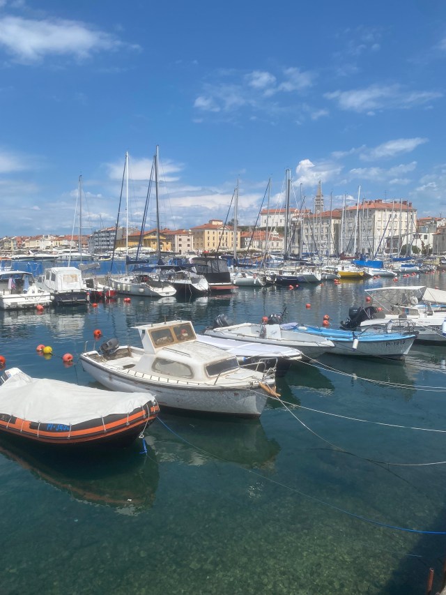 Before the square, Piran is home to a beautiful marina with white sailboats anchored and transparent blue-green waters where you can see cockles latched onto the boating ropes and tiny flashes of black fish slipping between the rocks.