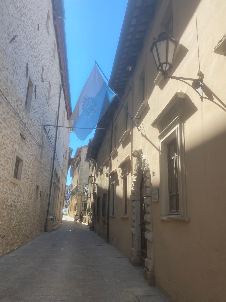 Their flag is one of the nicest I’ve seen, with white, sky blue and their towers, with the motto in Latin as ‘Libertas’- freedom.
