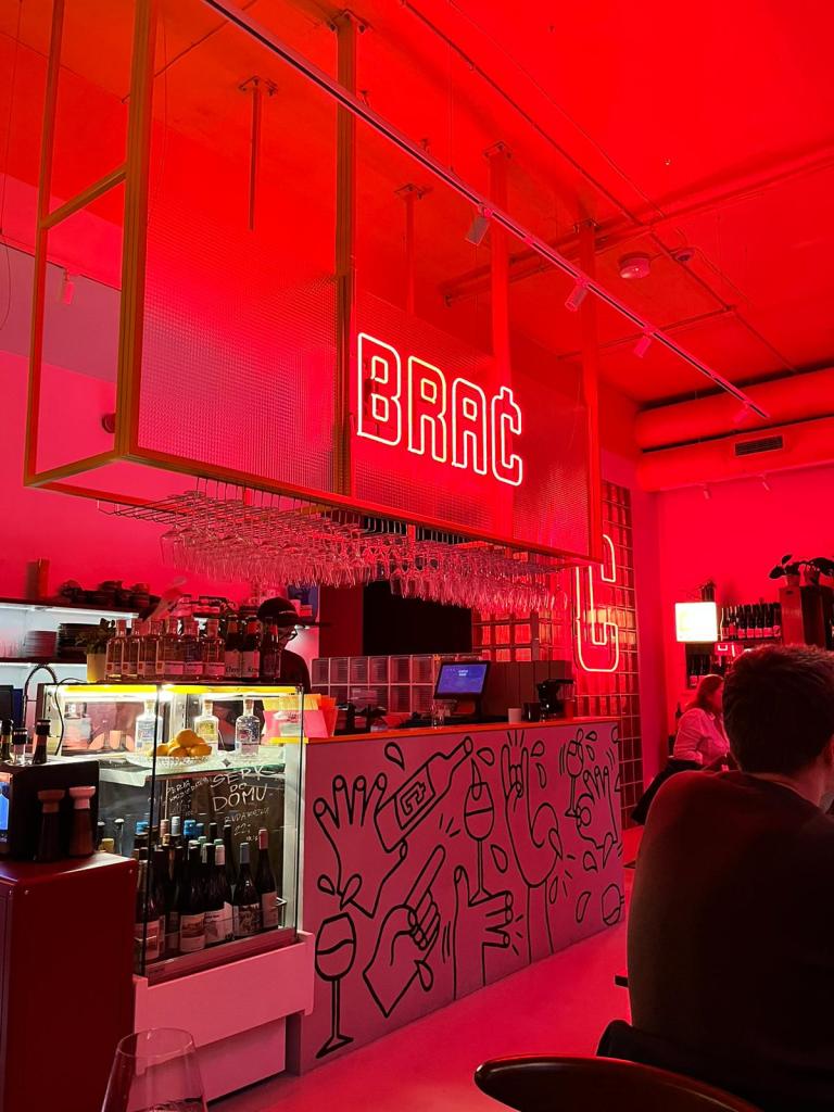 Moving on from there, Adrian advised us to go to his friend’s Polish wine bar 10 minutes away, called Brać. More beautiful wine, more beautiful cheese. Brać had such a cool and local vibe, all the patrons except for us residents of the neigthbourhood. Several fluffy dogs milling around chair legs, lowkey music, humorous bar staff and friendly clientele made for a perfect little bar- we wished it was our local!