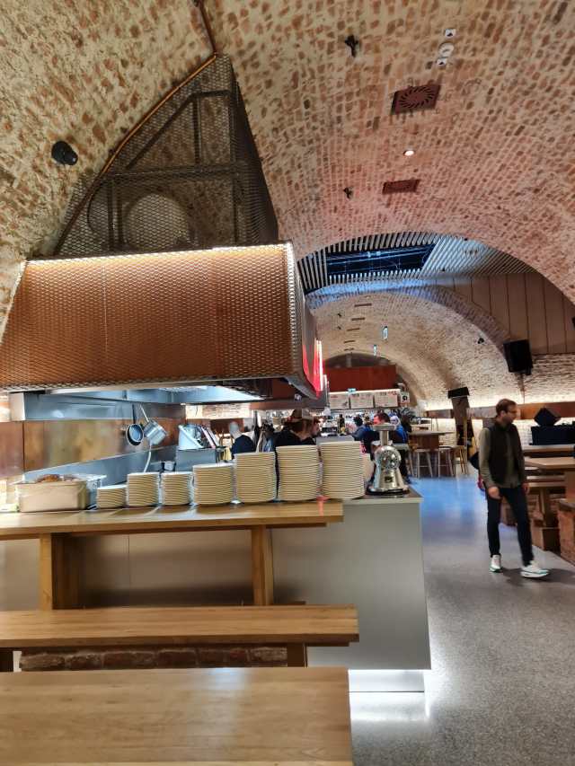We ran across the road in the rain to a lovely place called Food Hall Browary where they brew their own ales and serve international food, along with their own famous Polish pierogi (dumplings a bit like gyoza). The trendy red brick walls juxtaposed against gleaming wine bars and a stage for live music make for a great place to spend an hour or two in the afternoon, especially when waiting for the rain to pass.