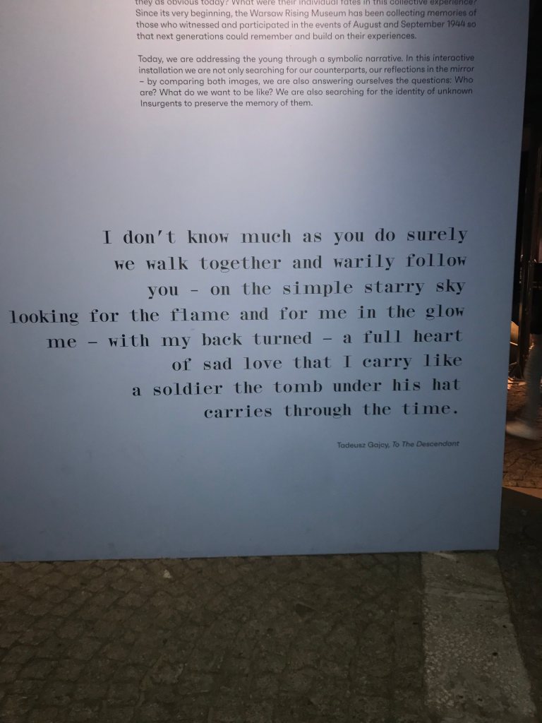 Poland has sadly suffered numerous attacks on its people and land for nothing but in the names of prejudice, hatred and greed. We wanted to learn more so headed to the Warsaw Uprising Museum which presents the events of August-October 1944 when the Polish resistance Home Army lead an uprising against the German occupation of Warsaw. (Tickets cost 30PLN which is roughly £5.71 in GBP).