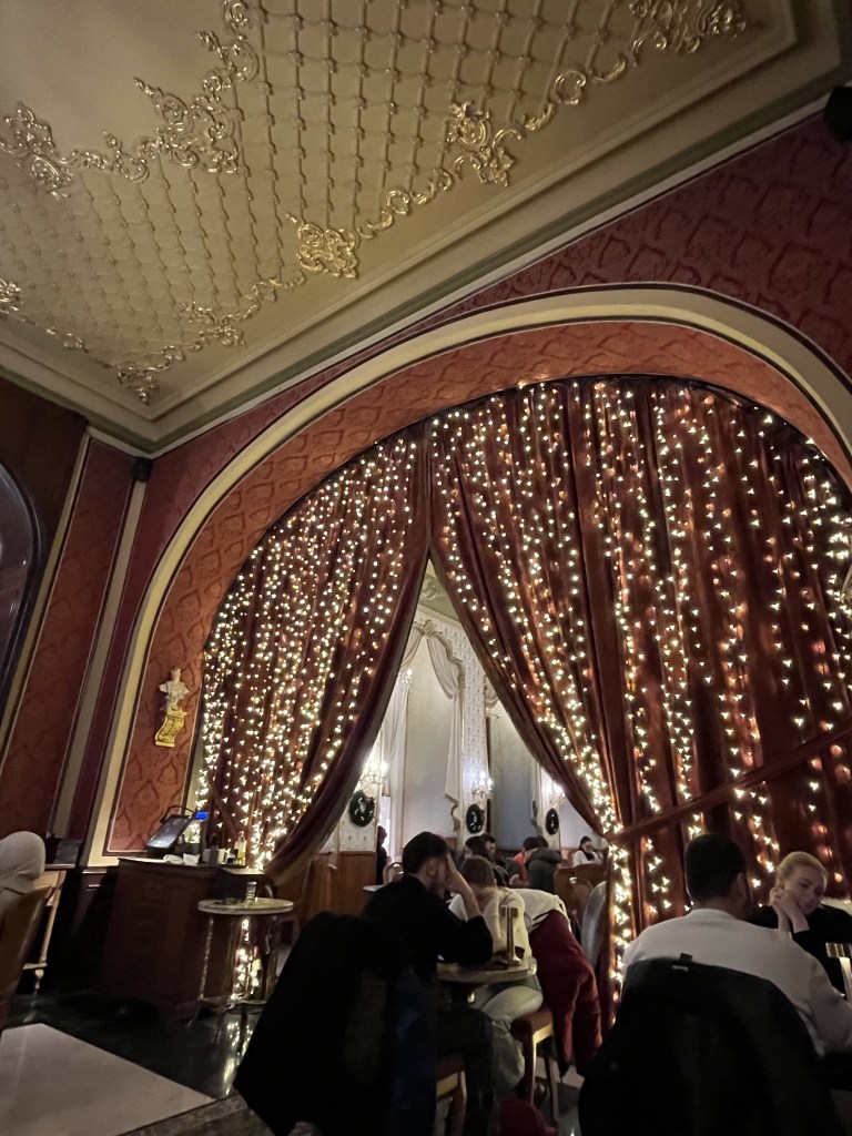 The café is around 125 years old, having been opened by the New York Insurance Company as the Viennese coffee house culture had travelled along the Danube and become massively popular in Budapest. Coffee (kávé) was brought to Hungary by the Ottomans in the 16th century and was a beloved drink of our grandad’s throughout his life.