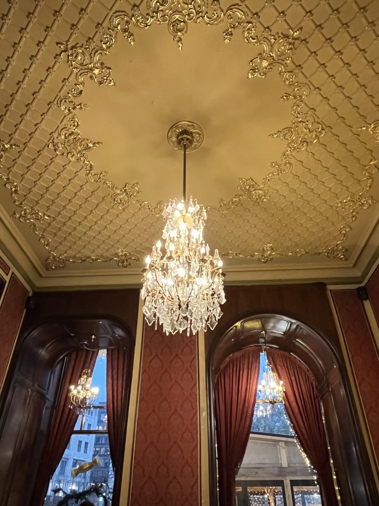 Our last morning dawned and we made our way over to the famous New York Café on one of Budapest’s main boulevards, Erzsébet körút. We thought we may have dodged the queues with it being early on a chilly morning out of peak season but when it boasts the accolade of ‘world’s most beautiful café’, of course there was a wait. We weren’t sure whether it was worth waiting or how long it would take but 15 minutes later, we were in.