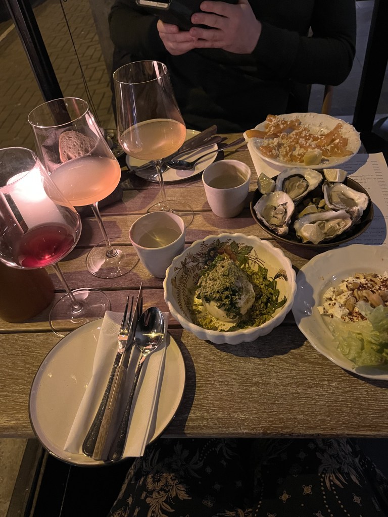Being the cautious eater I am, we went for the small plates including oysters, whipped feta topped with chilli flakes, green pesto burrata, and the freshest raw salmon I have ever tasted.