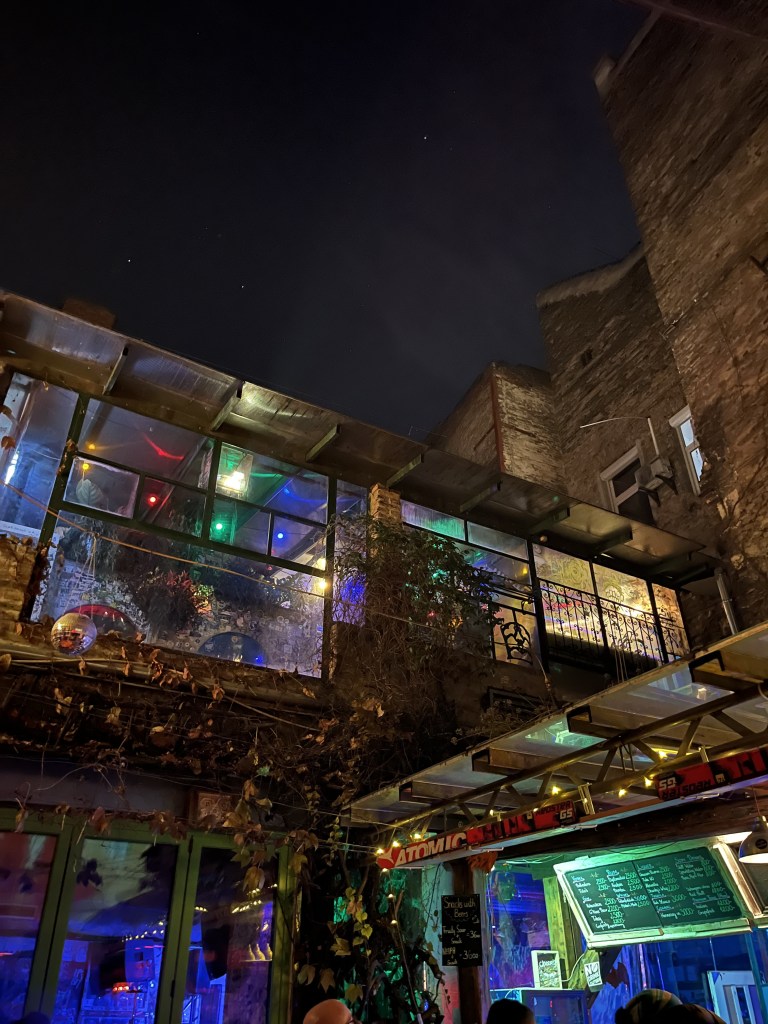 After Doblo, we wandered back through the streets and stumbled across one of Budapest’s famous ruin bars. Ruin bars are a bit like dive bars in that they have a sort of underground, cool vibe to them but they are set in repurposed old buildings and have various sections to them to suit whatever flavour of night out you are seeking.