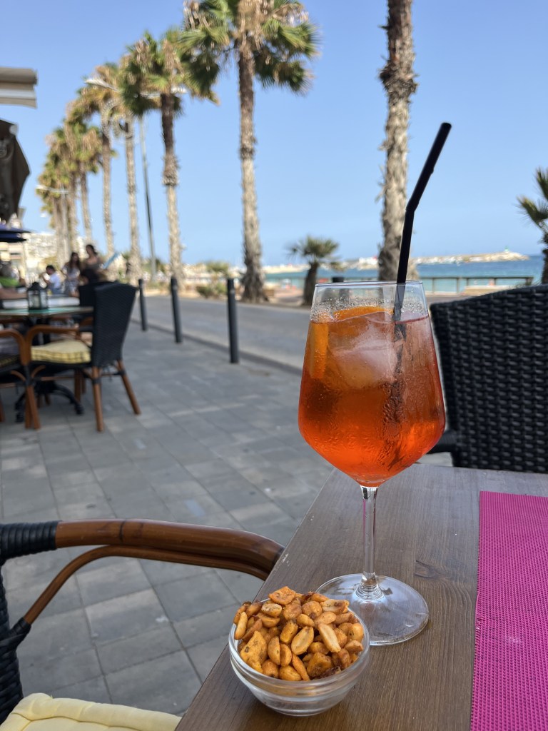 I ordered an Aperol Spritz and when I said “gracias”, he said “prego” (Italian for ‘you’re welcome’). When I went indoors to pay the bill, I asked for “il conto” instead of “la cuenta” (the bill) and when he clicked that I speak Italian, he insisted on inviting me to a beer. We chatted about music and he regaled me with tales of concerts he would go to in Milan back in the late 70s, 80s and early 90s and got to see some big bands before they became really famous, such as Queen With Freddie Mercury! (The performer I most wish I’d have been around to see!)