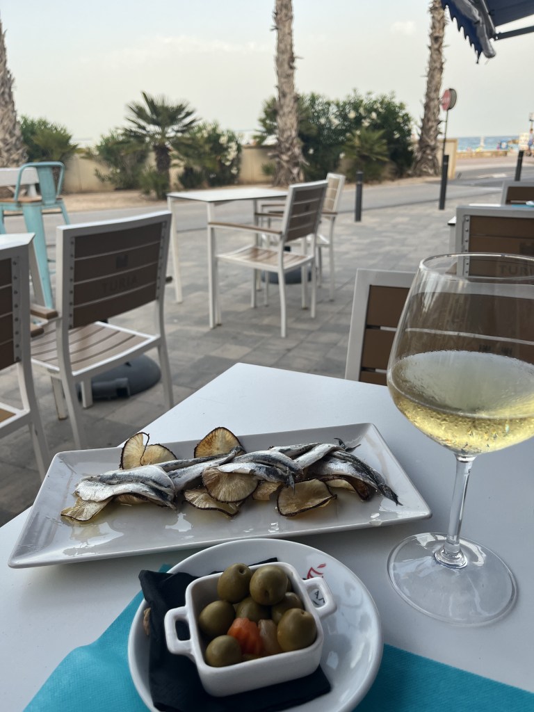Olives can be an acquired taste (it took me around the supposed 11 times of trying something you don’t like in order to finally like it with these!) and not everyone likes fish but I consider it one of life’s real pleasures sitting near the sea, eating fresh fish or seafood, with a glass of chilled white wine.
