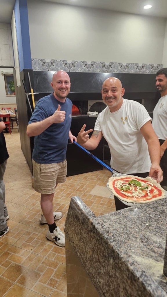Angelo swept Luke (who is a chef) off to his local pizzeria and took him backstage to meet his pizzaioli friends and to help make our own pizzas. Luke loved this, and we were delighted when he sent photos to our Whatsapp group showing us where he was!