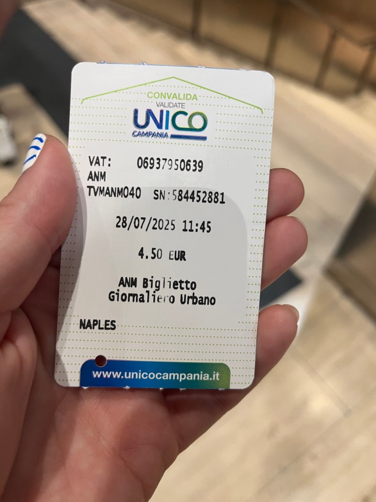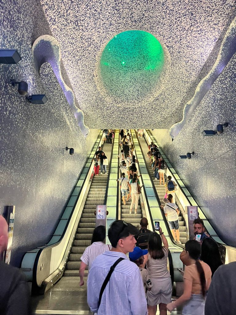 If you want to travel beyond the Centro Storico, a day ticket for the Napoli underground costs 4.50 euros. The Toledo metro station is stunning with blue tiles and an opening up to the light giving the illusion you are under the sea, looking up to the surface: