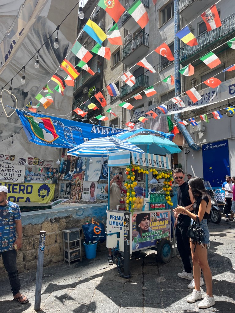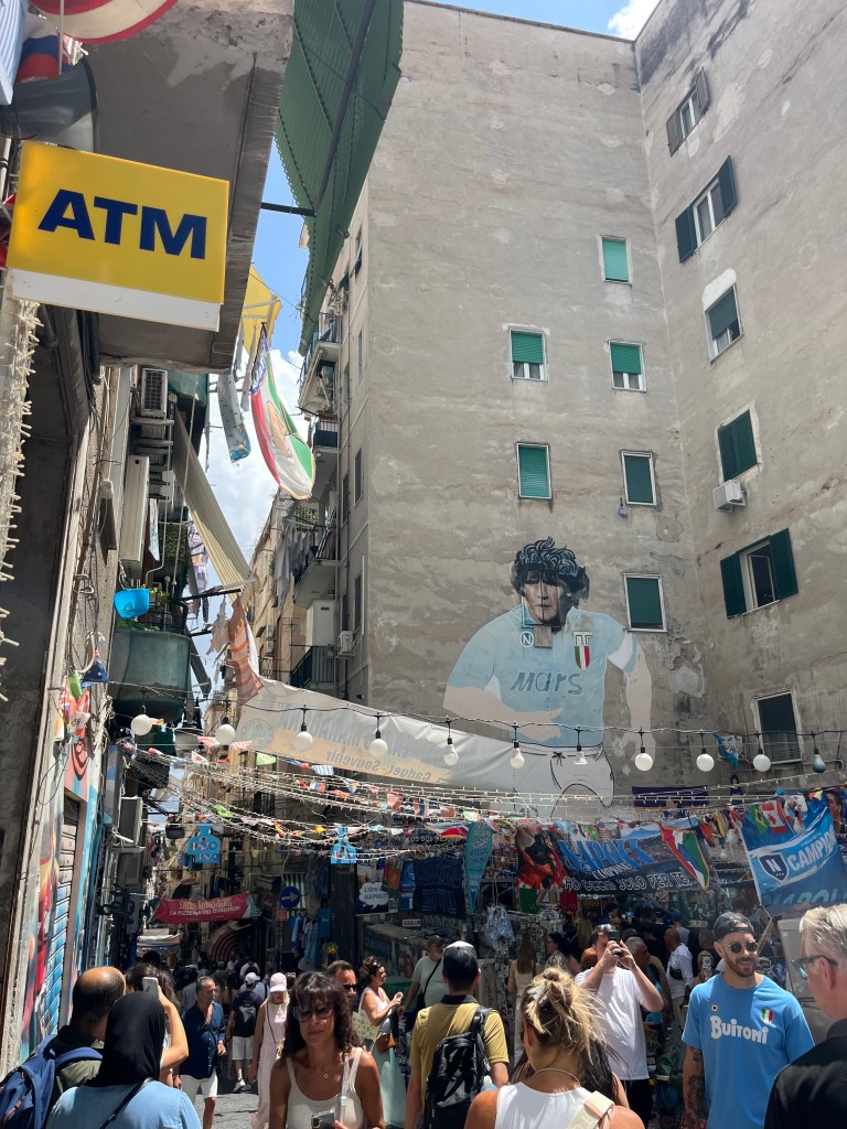 At the heart of the centro storico is the famous Quartieri Spagnoli, so named after Naples’ old connection to Spain, and it also serves as a living, dynamic tribute to the late Argentinian footballing legend Diego Maradona, who is akin to a saint to the people of Napoli.