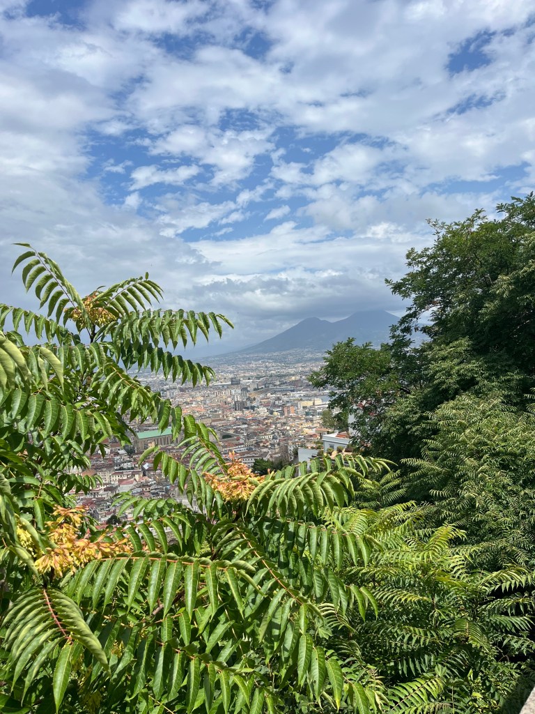 We walked up and out of the Quartieri Spagnoli and took the steep climb up towards the viewpoint called the Belvedere San Martino. A few pauses for a sip of water were necessary, let me tell you.